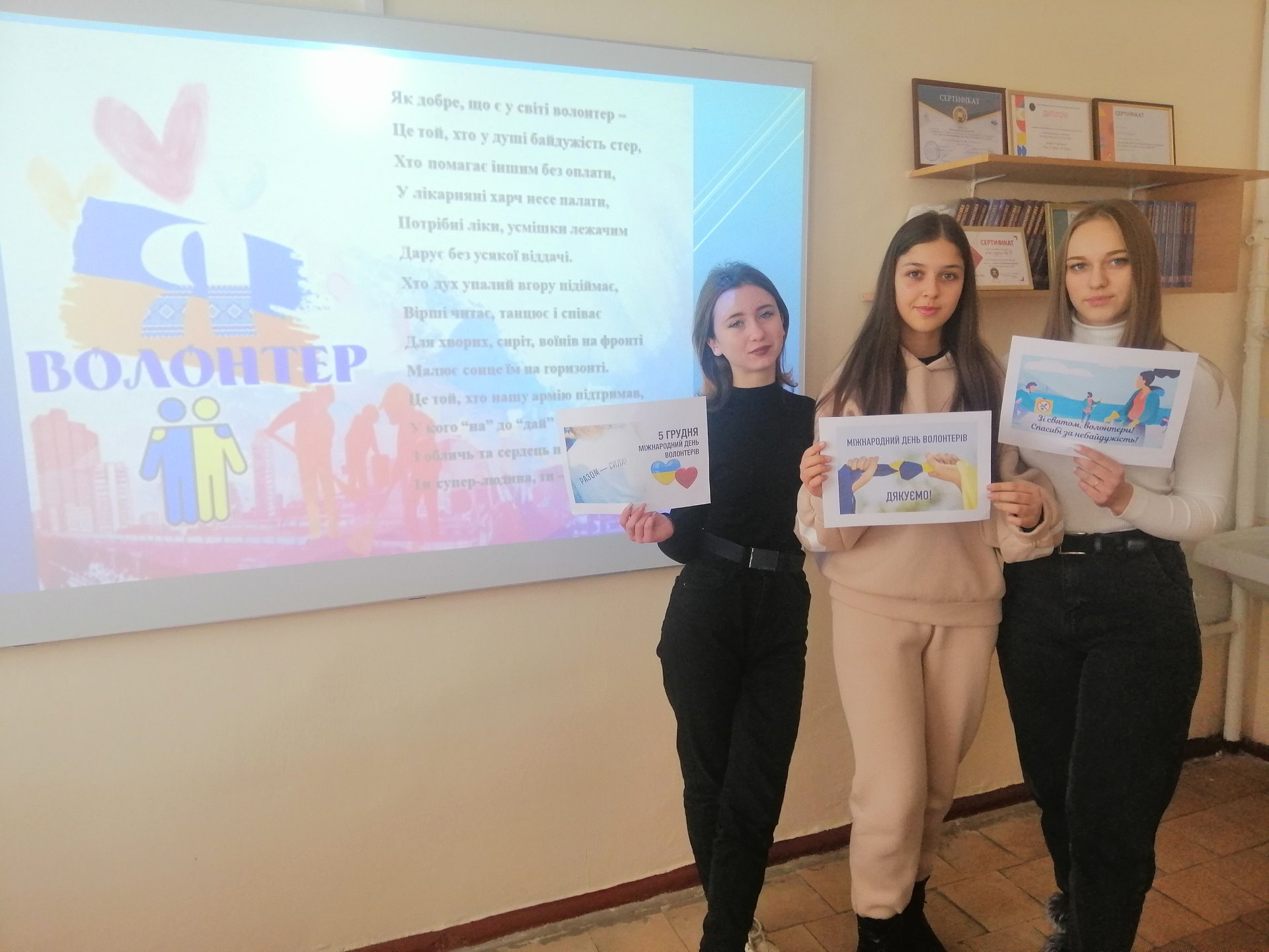 5 грудня відзначають Міжнародний день волонтера. В цей день здобувачі освіти групи № 15, разом з класним керівником Ларисою Кацалап, підготували та провели виховну годину "Волонтери-люди доброї волі", де розповідали про те, що волонтерська діяльність має неоціненне значення і тільки добро збереже світ. Під час заходу, учні дізналися про різноманітні форми волонтерської діяльності, ближче познайомились з роллю волонтерів в Україні. Вихованці також розказали про свій власний волонтерський досвід під час війни та історії успіху в цій сфері. Діти дійшли висновку, що волонтерство позитивно впливає на їх особистість та сприяє розвитку навичок, таких як лідерство і комунікація. Вони продемонстрували свою готовність допомагати іншим, розуміння соціальної відповідальності та бажання змінювати світ на краще через свої добровільні зусилля.