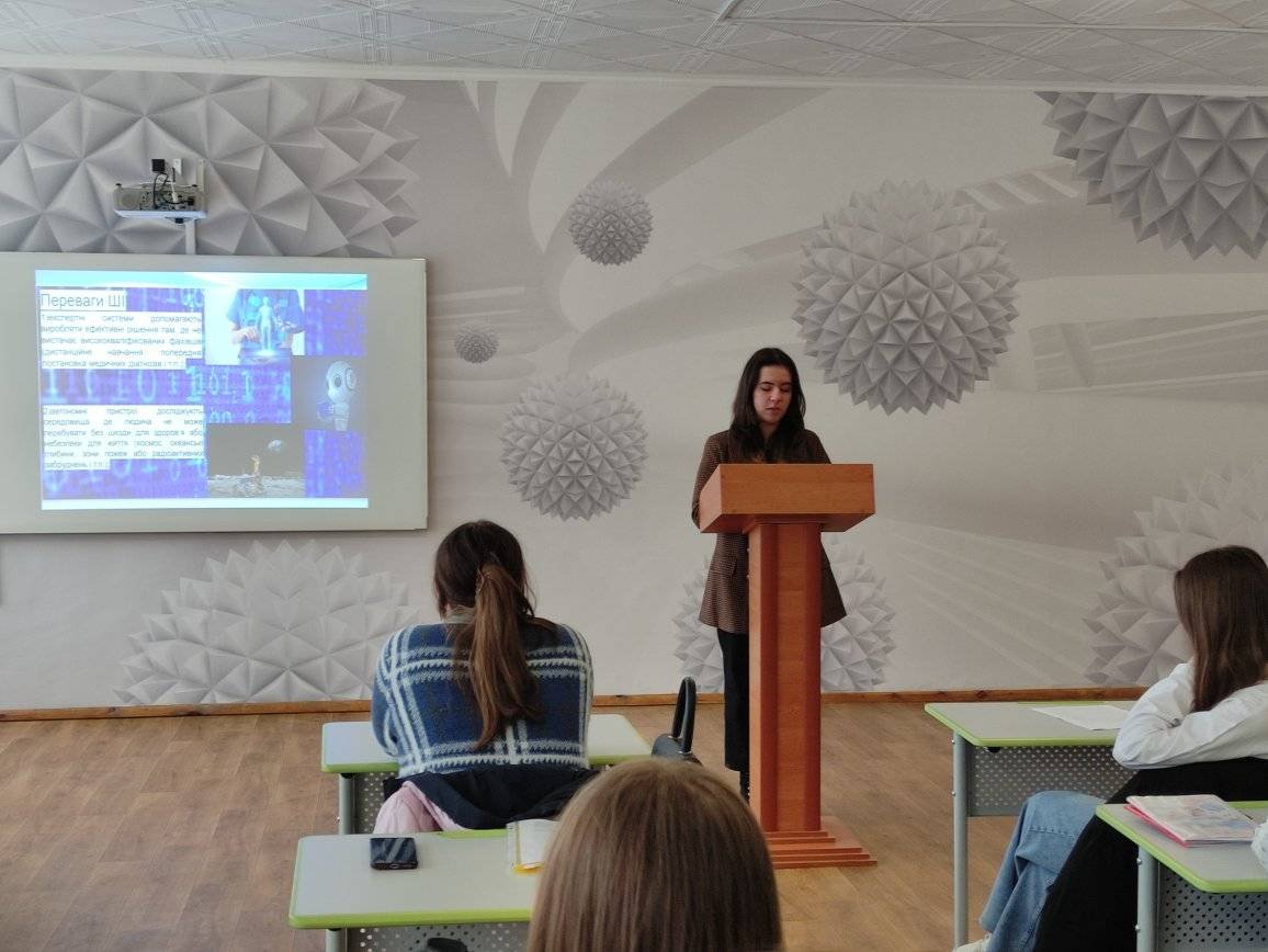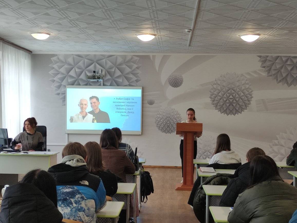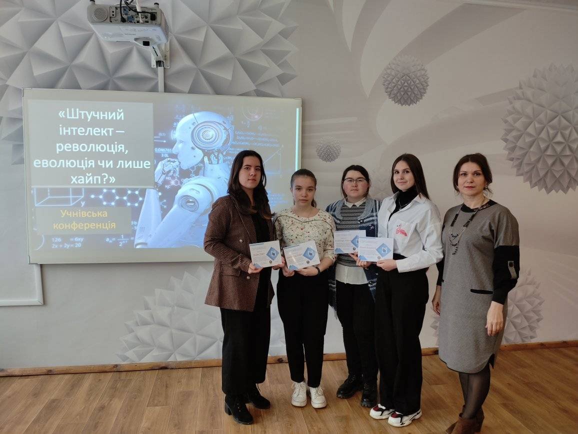 6 квітня 2023 року, в рамках тижня природничо-математичних дисциплін, інтерактивній читальні закладу, викладачем інформатики Кацалап Л.М. була проведена учнівська конференція "Штучний інтелект-еволюція, революція чи лише хайп?» Данько Анастасія повідомила про історію ШІ, Шабатіна Софія-про відомого робота Софію. З великою цікавістю здобувачі слухали виступ Петрик Яни, яка познайомила присутніх з програмами, що працюють на базі ШІ:DALL-E, Art Breeder, AI Duet. Остапчук Марина розповіла про широкі можливості Chat GPT та його використання для навчання. Про переваги та недоліки штучного інтелекту присутні дізналися з виступу Богдан Маріі. Здобувачі освіти мали можливість поспілкуватися з Ші, завдяки чату «На Урок»: спілкування із видатними постатями минулого» та отримати обгрунтовані відповіді.
